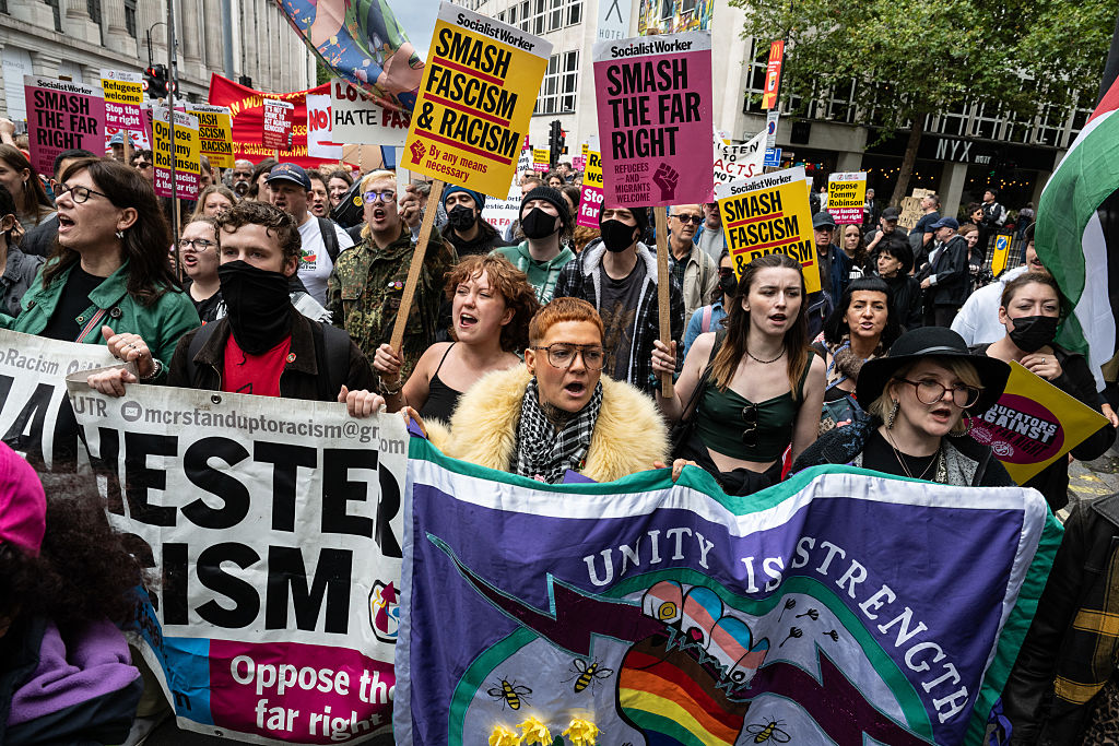 As the afternoon wore on, tensions simmered over. A rival Stand Up to Racism counter-protest, numbering around 5,000, was penned-in nearby and scuffles erupted when a minority of Unite members hurled bottles and breached barriers.