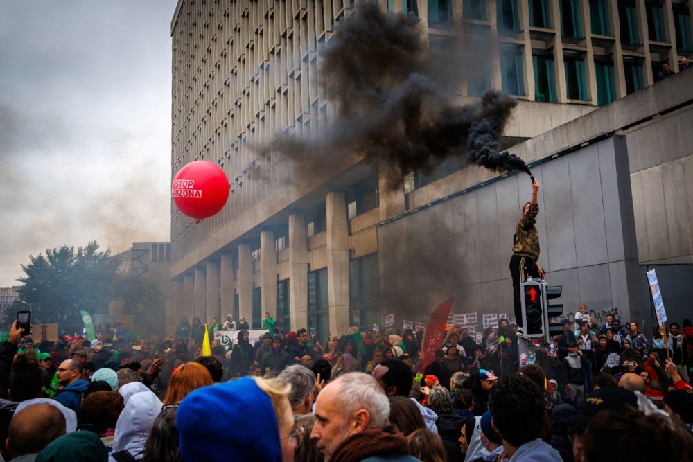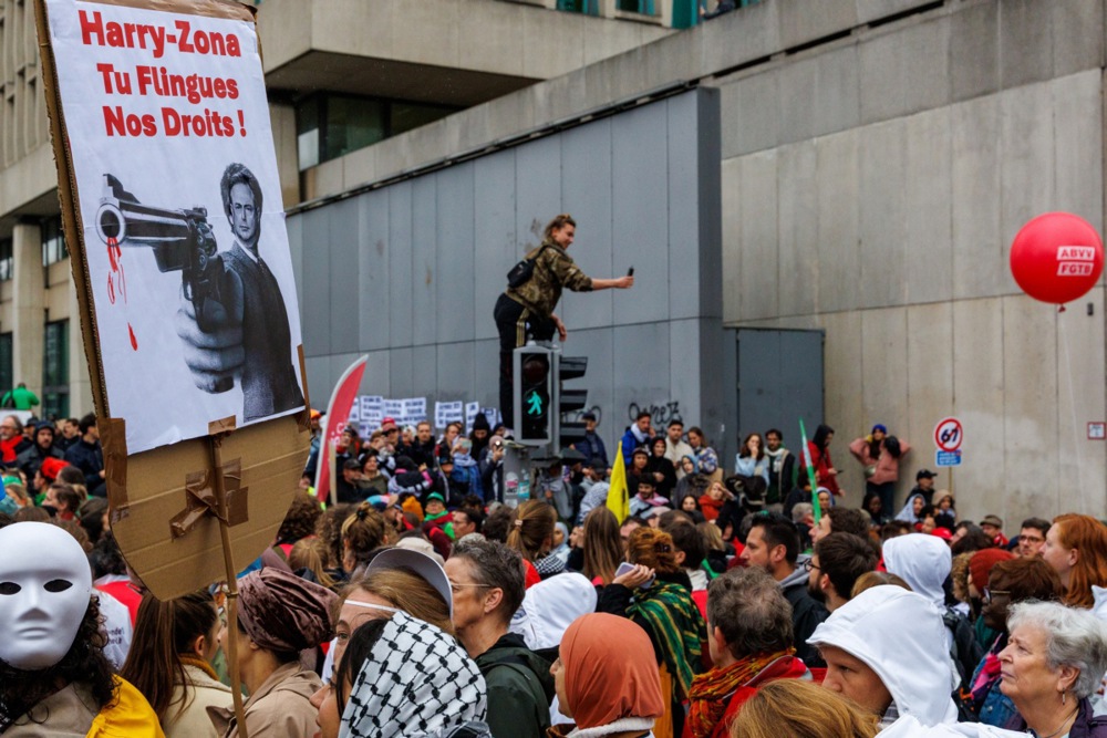 Police estimated 80,000 participants converged on the city centre, marching from Brussels North Station to the South Station under banners decrying “Pension Theft” and chants of solidarity for workers’ rights.