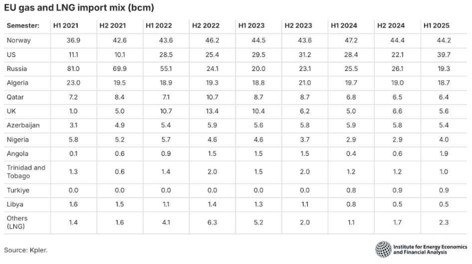 European imports of US LNG rose by 46 per cent year on year in the first half of 2025 alone. The United States now accounts for 57 per cent of Europe’s LNG imports, according to IEEFA.