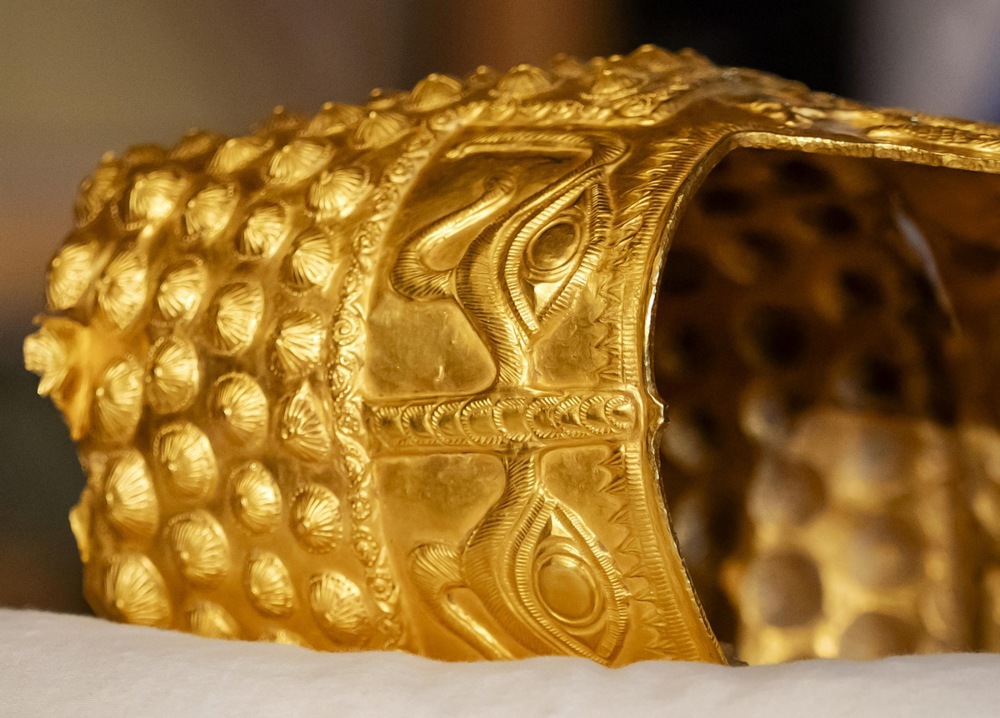 The stolen pieces included the intricately decorated helmet — which weighs nearly 1 kg and features mythological motifs, including eyes believed to ward off evil — and three spiral gold bracelets from around 50 BC. The bracelets are believed to have been royal offerings rather than daily jewellery.